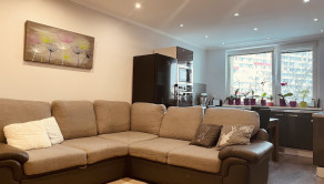 - Byt je po kompletnej rekonštrukcii z roku 2016 a zahrňuje plastové okná, bezpečnostné dvere, interiérové dvere, nové podlahy, zrekonštruovanú sanitu, nové rozvody vody, novú elektroinštaláciu (okrem dvoch el. zásuviek sú všetky zrenovované). Veľká kuchynská linka so vstavanými spotrebičmi vrátane umývačky riadu, vstavaná rúra, vstavaná mikrovlnka, indukčná varná doska. Viď fotogaléria. Kúrenie je ústredné. Izby sú nepriechodné. V kupelni ostava pračka a sušička.