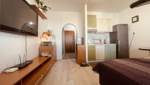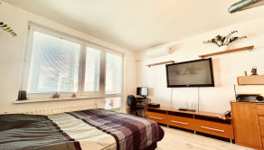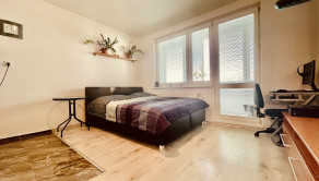 .: Byt je po čiastočnej rekonštrukcii. Štandard zahrňuje novú laminátovú podlahu v izbe, klimatizáciu značky Samsung, zasklenú loggiu, bezpečnostné vstupné dvere s drevenou zárubňou, vstavanú skriňu Rolldor.