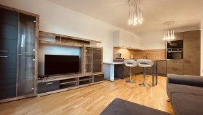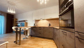 Moderne zariadený byt je plne zariadený kompletne novým nábytkom, v kuchyni je veľká chladnička s mrazničkou, varná doska, elektrická rúra, umývačka riadu, práčka. V spálni priestranná posteľ.