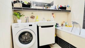 Kuchyňa so zabudovanými spotrebičmi: plynová doska, elektrická rúra, umývačka riadu a digestor,z kuchyne prechod na balkón, kde sa nachádza udržiavaná predzáhradka. Obývačka rozdelená na spaciu a dennú časť, nábytok na mieru z dvoma stavanými skriňami. Byt sa predáva kompletne zariadený. K bytu patrí uzamykateľná pivničná kobka.